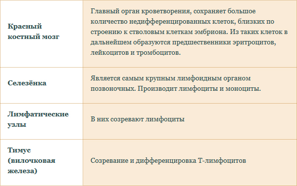Таб. «Основные органы кроветворения»