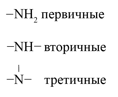 Амины – предельные органические вещества, содержащие аминогруппу, которая, в зависимости от амина может иметь следующий вид: